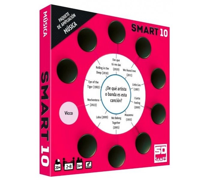 ¡Un nuevo conjunto de tarjetas de preguntas para el juego SMART 10!Contiene 50 tarjetas de doble cara con 100 nuevas preguntas y 1000 nuevas respuestas. Las preguntas abarcan todos los aspectos relacionados con la música: artistas, canciones, historia...Reemplazad las tarjetas de preguntas en la caja Smart con dos paquetes de ampliación temáticos o mezclad estas preguntas de música con la mitad de las tarjetas originales.Para poder usar estas preguntas se requiere tener el juego la caja Smart incluida en cualquier juego base de Smart10.Nota del editor: Nos encanta jugar con un reproductor de música y recordar las canciones de las preguntas... ¡aunque se nos alarguen las partidas cantando!