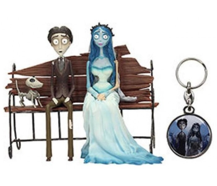 Revive la magia de The Corpse Bride con este increÃble set de figuras de Emily y Victor. Perfectamente detalladas, capturan la esencia melancólica y romántica de esta historia icónica de Tim Burton. Como un extra especial, recibe un llavero metálico de regalo con tu compra.