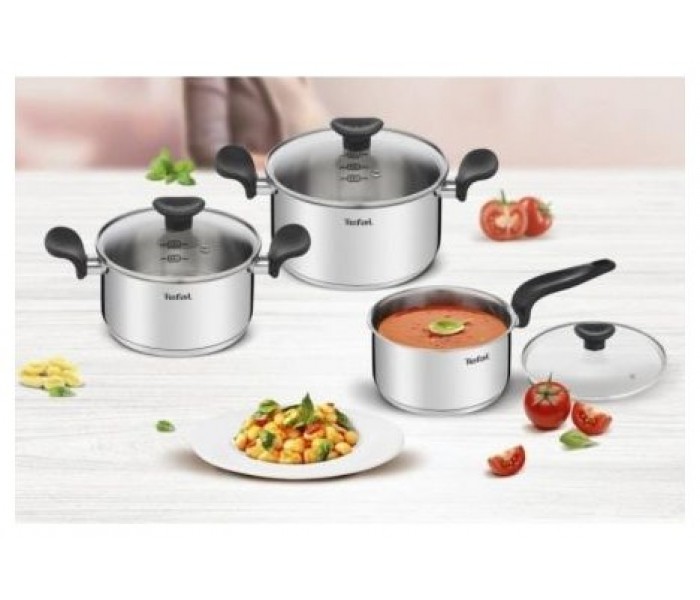 Batería de Cocina Tefal E308S674 Apto para lavavajillas, Plateado, Acero inoxidable
