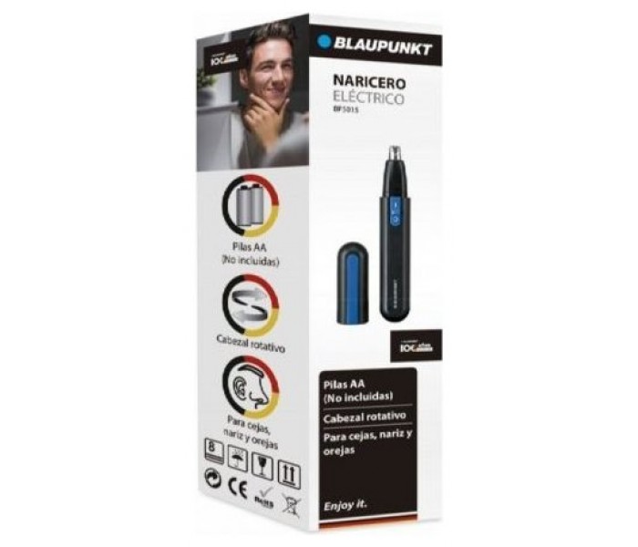 Blaupunkt BP5015 es un naricero eléctrico compacto con cabezal rotativo y alimentación a 1 pila AA para eliminar vello de nariz, orejas y retoques en cejas con precisión y bajo ruido. El cabezal se lava bajo el grifo y el cuerpo está protegido contra salpicaduras.