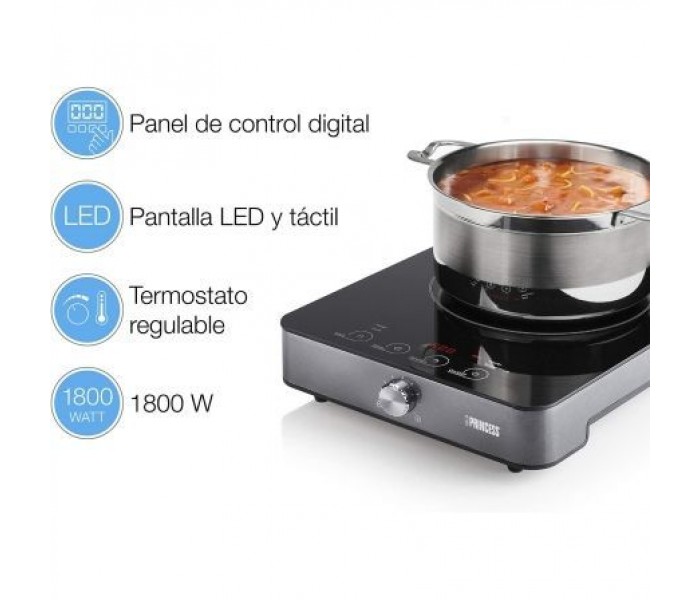 Placa de Inducción Princess 303010/ 1 placa de 200mm/ 1800WLa lujosa placa de inducción Princess 303010 es una placa calefactora autónoma con un lujoso diseño en color negro. Su práctica pantalla LED hace que usar esta placa calefactora sea muy fácil y, además, gracias a su gran potencia, sus ollas y sartenes se calentarán rápidamente. Una ..