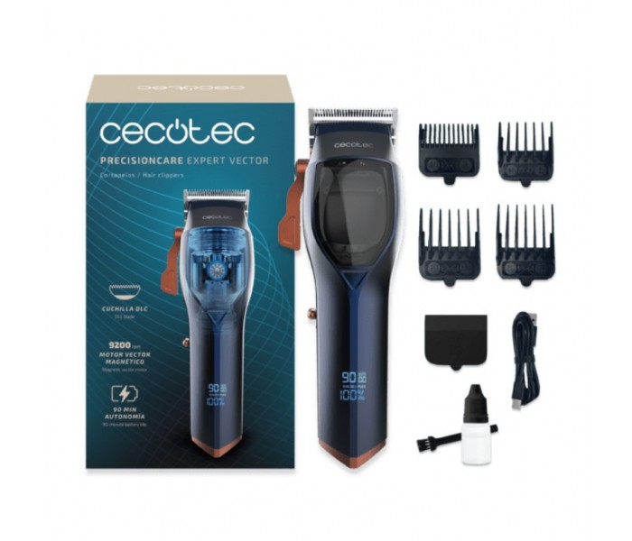 PrecisionCare Expert VectorPrecisión y potencia en cada corteCorte más cómodo y rápidoLa pantalla digital te muestra en tiempo real la carga y las revoluciones por minuto, asegurando que siempre termines tu trabajo sin parones.Sin interrupcionesSus 90 minutos de autonomia te permiten realizar cortes precisos sin interrupciones. Ideal para sesiones largas o para llevarla de viaje.Personaliza el corteIncluye 4 peines de longitud (3/6/9/13 mm) que ofrecen la flexibilidad que necesitas para personalizar cada corte. Consigue desde cortes más cortos hasta looks más largos y definidos. Mantenimiento bajo controlCuenta con un indicador de mantenimiento inteligente que te avisa cuándo aplicar aceite a las cuchillas y cuando la batería está baja para que siempre tengas lista tu cortapelos.Ajusta, corta y perfeccionaModifica la longitud del corte de forma rápida y precisa gracias a su palanca de ajustes. Personaliza cada look y logra detalles definidos en cada pasada.