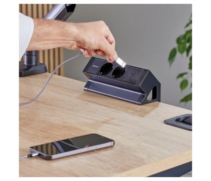 - Carga tus dispositivos sin esfuerzo y mantén tu espacio de trabajo limpio y ordenado con este módulo de alimentación de sobremesa de fácil acceso..