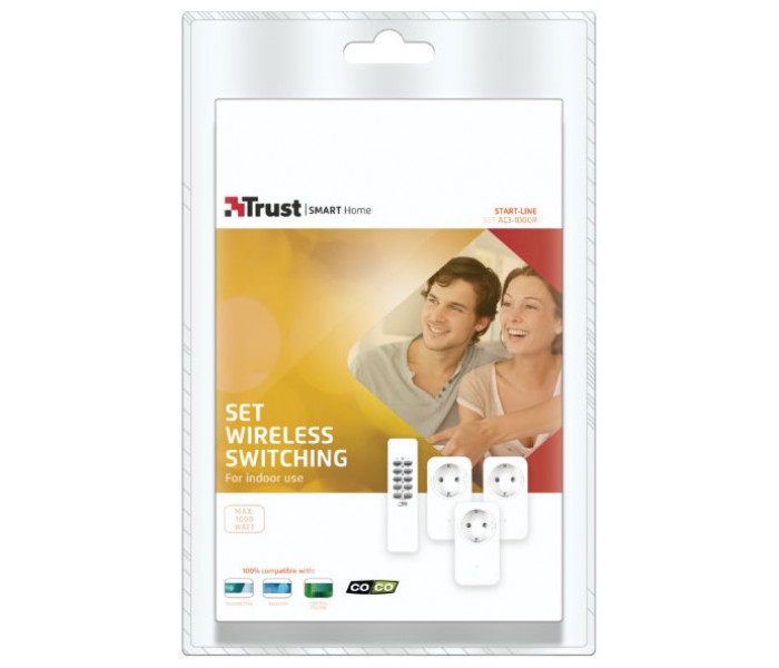 KIT CONMUTACION INALAMBRICA TRUST SMART HOME AC3-1000R - 30M - HASTA 16 DISPOSITIVOS - PROTECCION INFANTIL - INTERIOR