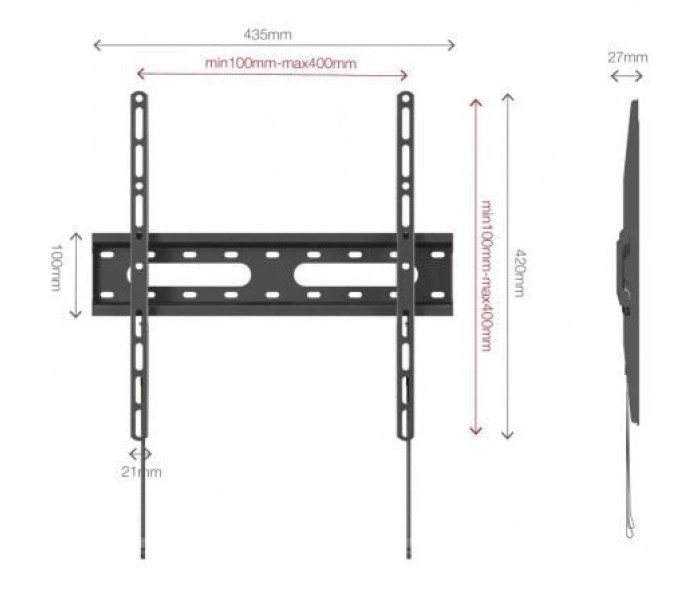 El soporte de pared FIX-044BA es una solución robusta y compacta para televisores de 32"" a 70"", compatible con pantallas VESA desde 75x75 hasta 400x400. Diseñado en color negro elegante y con una estructura extraplana de solo 2,7 cm de distancia a la pared, este soporte se adapta perfectamente a cualquier entorno sin ocupar espacio adicional. Ideal para optimizar la instalación de tu TV, mantiene un perfil estético y discreto en cualquier estancia.