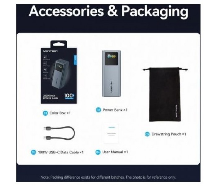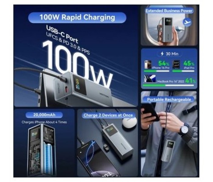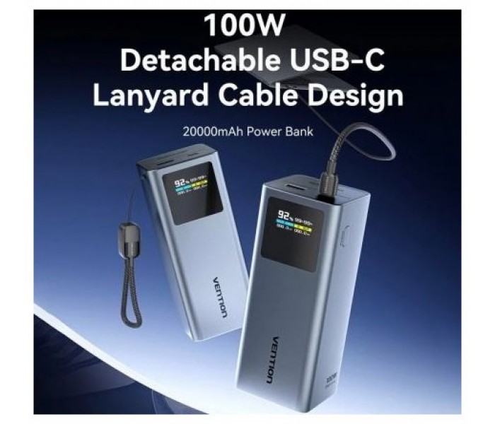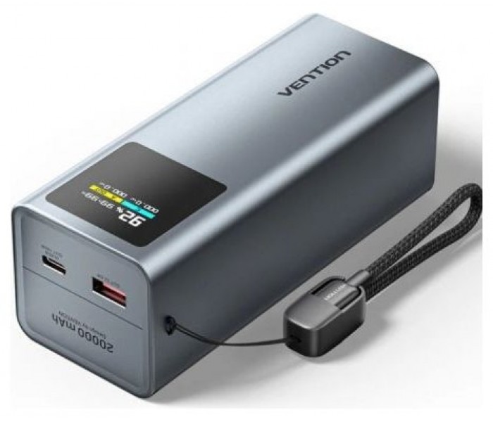 20000mAh Power Bank (USB-C + USB-C/USB-A) 100W Gray TFT Display Type