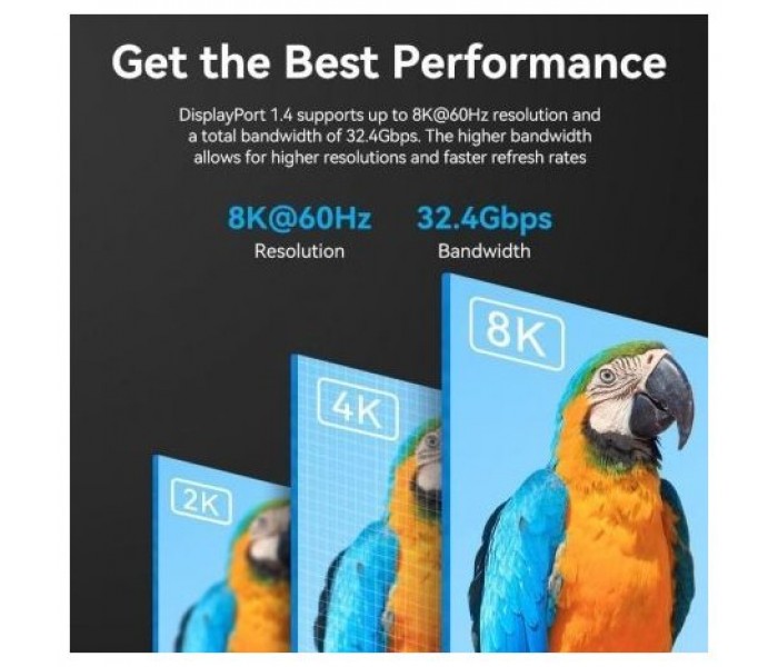 - Resolución 8K 60Hz, 4K 144Hz/120Hz, 2K 240Hz/165