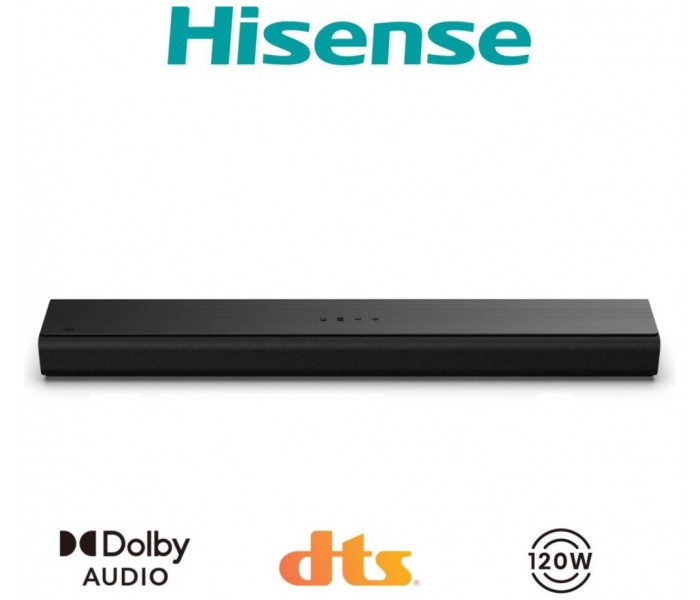 Hisense HS1000. Canales de salida de audio: 2.0 canales, Potencia estimada RMS: 120 W, Decodificadores incorporados: DTS Virtual:X, Dolby Audio, Dolby Digital Plus. Color del producto: Negro. Tecnología de conectividad: Alámbrico. Voltaje de entrada AC: 100-240 V, Frecuencia de entrada AC: 50-60 Hz, Consumo eléctrico de la barra de sonido: 120 W. Ancho: 702 mm, Profundidad: 100 mm, Altura: 57 mm