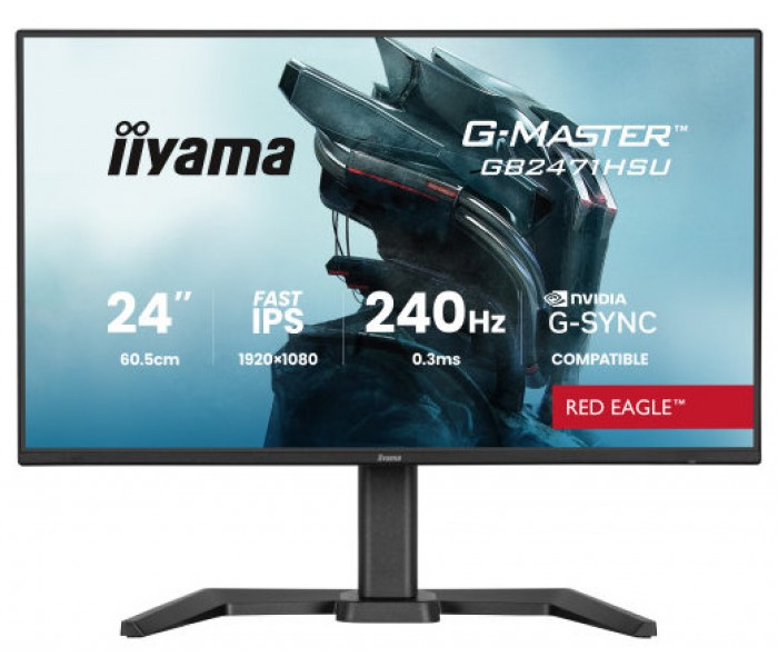 MONITOR IIYAMA 24 PULGADAS RESOLUCIÓN FULL HD (1920X1080), PANEL FAST IPS, 0,8 MS (MPRT), 165 HZ, BRILLO 250, CONTRASTE 1100:1, HDMI, DISPLAYPORT, USB HUB, ALTAVOCES 2 × 2W, FLICKER-FREE, LOW BLUE LIGHT, FREE SYNC PREMIUM, MODOS DE JUEGO PREDEiiyama GB2471HS-B1. Diagonal de la pantalla: 60,5 cm (23.8"), Resolución de la pantalla: 1920 x 1080 Pixele..