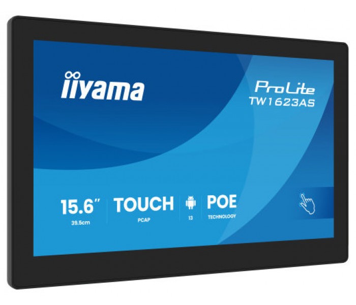 IIYAMA 15,6" PANEL-PC ANDROID 13+GMS, SOC QUAD-CORE RK3568 4GB, 32GB, 10-POINTS TOUCH, 1920X1080, IPS , SPEAKERS, MIC , POE, WIFI, BT5.2, MICRO-SD SLOT, HDMI-OUT, 3X USB, 385CD/M2, CABLE COVER, IISIGNAGE2 SUPPORTED (TW1623AS-B3P)