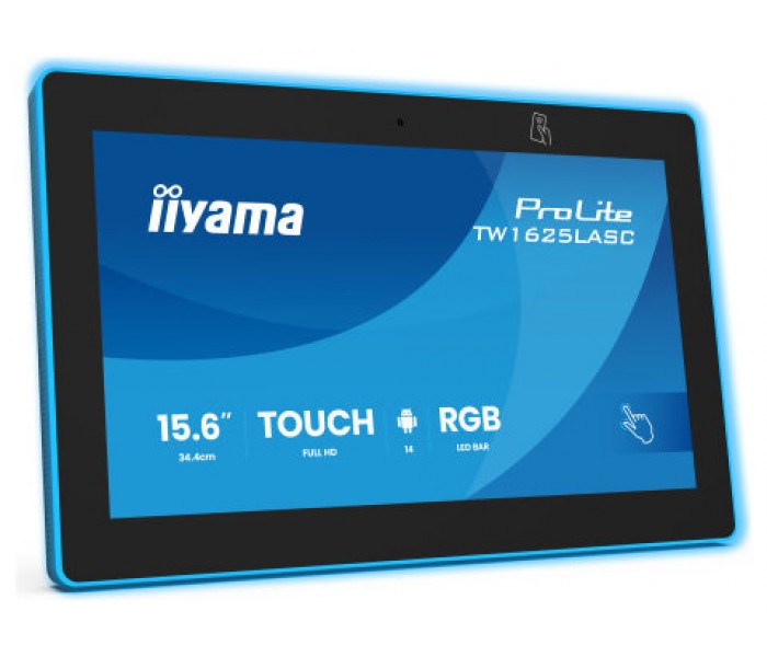 IIYAMA 15,6" RGB LED-LIGHTBAR PANEL-PC ANDROID 14+GMS, SOC OCTA-CORE RK3576 4GB, 32GB, 10-POINTS TOUCH, 1920X1080, IPS , SPEAKERS, MIC, CAMERA 5MP, NFC, RFID, POE, WIFI6E, BT5.3, SD SLOT, 390CD/M2, CABLE COVER, IISIGNAGE2 SUPPORTED (TW1625LASC-B3PNR)