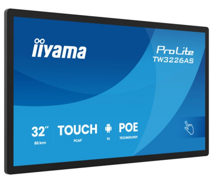 IIYAMA 32" PANEL-PC ANDROID 14+GMS, SOC OCTO-CORE RK3576 4GB, 32GB, 10-POINTS TOUCH, 1920X1080, VA PANEL, SPEAKERS, MIC, POE, WIFI, BT5.3, MICRO-SD SLOT, HDMI-IN, 3X USB, 430CD/M2, IISIGNAGE2 SUPPORTED, FLUSH WALL-MOUNT INCLUDED (TW3226AS-B3P)