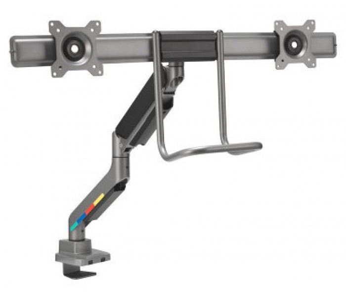 Soporte de Mesa para 2 Monitores TooQ DB3132TNR-S/ Giratorio/ Inclinable/ hasta 9kgDB3132TNR-SSoporte de mesa para 2 pantallas 13"-32"- VESA: 75x75 y 100x100- Peso máximo soportado de pantalla: 9 kg/brazo- Brazo con pistón de gas regulable Marca TooQ Modelo DB3132TNR-S Caracteristicas - Pantallas soportadas: 13"-32" - Compa..