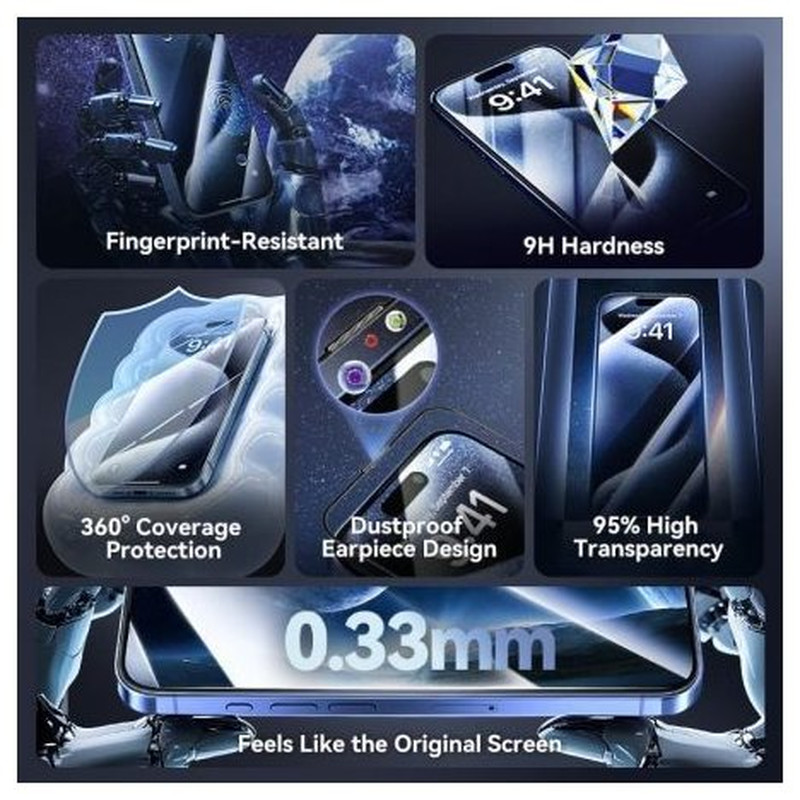 Pack de 2 Protectores de Pantalla de Cristal Templado Vention KUOTCC-40 para iPhone 15 Pro Max + Herramienta de Instalación AntipolvoPack de 2 Protectores de Pantalla de Cristal Templado Vention KUOTCC-40 para iPhone 15 Pro Max + Herramienta de Instalación AntipolvoPack de 2 Protectores de pantalla de vidrio templado HD para iPhone con herramienta ..