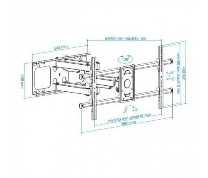 +3° - - 3° - distancia de pared: 69 - 635 mm - sistema de organización de