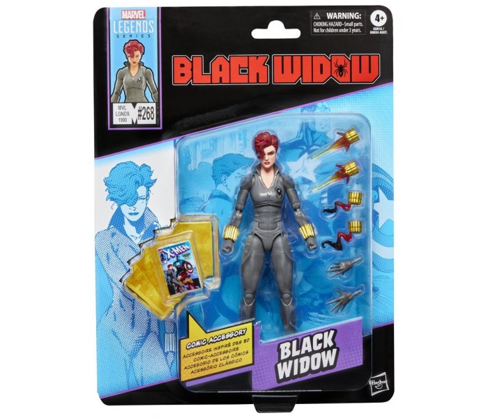 ¡Trae la emoción y la maravilla del Universo Marvel a tu colección con la figura de acción de Viuda Negra, de la línea Marvel Legends de Hasbro! Esta figura coleccionable a escala de 15 cm ha sido diseñada para verse igual al personaje de los cómics de Uncanny X-Men #268 (1990) y de los Vengadores de Marvel y cuenta con diseño premium con cabeza, manos y piernas articulables.Este set de figura de acción Marvel viene con 7 accesorios, incluyendo 2 manos alternativas, 2 guanteletes con efecto de combate, 2 guanteletes con efecto de humo y un accesorio de plástico con forma de cómic a escala de 15 cm con la portada de Uncanny X-Men #268 (1990). Las figuras de acción Marvel de Hasbro a escala de 15 cm son ideales para exhibirlas en las colecciones de los fans. Reimagina escenas inspiradas en los cómics en tus estantes con las figuras de acción Marvel Legends y los artículos de colección de Marvel.