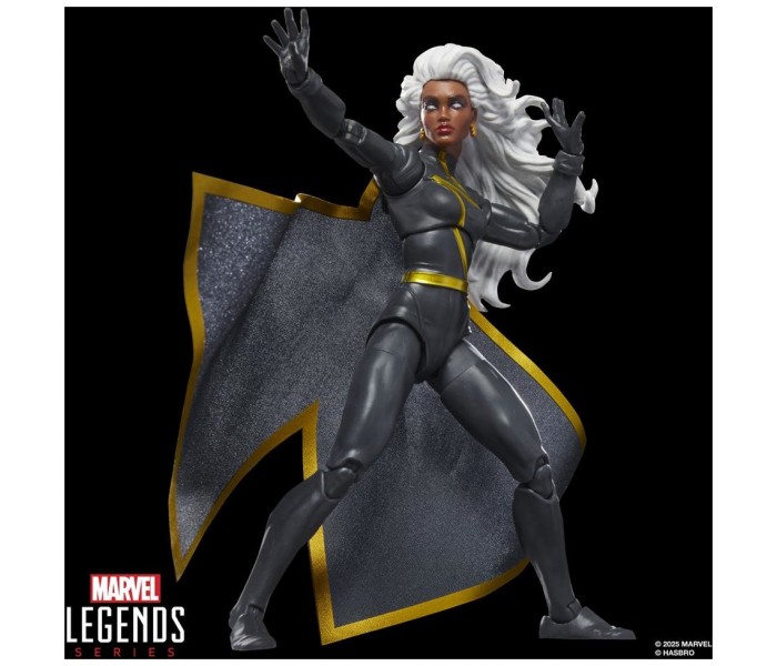 ¡Trae la emoción y la maravilla del Universo Marvel a tu colección con la figura de acción de Tormenta, de la línea Marvel Legends de Hasbro! Esta figura coleccionable a escala de 15 cm ha sido diseñada para verse igual al personaje de los cómics de la Patrulla-X de Marvel y cuenta con diseño premium con cabeza, manos y piernas articulables. Este set de figura de acción de Marvel viene con 4 accesorios, incluyendo 2 puños alternativos y 2 manos alternativas con efectos de rayos, además de una capa de tela. Las figuras de acción Marvel de Hasbro a escala de 15 cm son ideales para exhibirlas en las colecciones de los fans. Reimagina escenas inspiradas en los cómics en tus estantes con las figuras de acción Marvel Legends y los artículos de colección de Marvel.