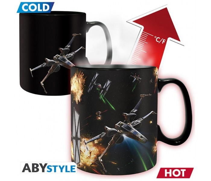 La taza STAR WARS Heat Change Space Battle de ABYstyle está pensada para los verdaderos fans de la saga galáctica. Con un diseño inspirado en las batallas espaciales entre X-Wings y TIE Fighters, esta taza ofrece un efecto térmico sorprendente: al verter tu bebida caliente, la ilustración cambia y cobra vida. Una forma original y práctica de empezar el día con un guiño al universo STAR WARS.