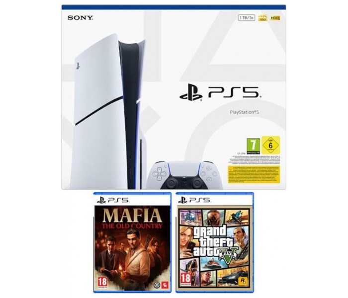 La PlayStation 5 Standard con chasis E llega en este completo pack que incluye dos videojuegos icónicos: Mafia: Definitive Edition y Grand Theft Auto V. Diseñada para los que buscan potencia, fluidez y calidad gráfica de nueva generación, esta PS5 con lector de discos ofrece una experiencia inmersiva gracias a su tecnología de vanguardia y a su nuevo diseño más compacto y eficiente. Ideal tanto para jugadores habituales como para quienes quieren dar el salto a la nueva generación con títulos de referencia.