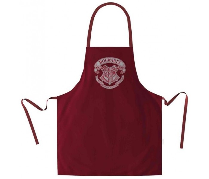 El delantal presenta el logo oficial de Hogwarts, en un formato visual que recuerda a los atuendos característicos de la saga. Este diseño lo convierte en un accesorio único para los amantes del mundo mágico de J.K. Rowling.