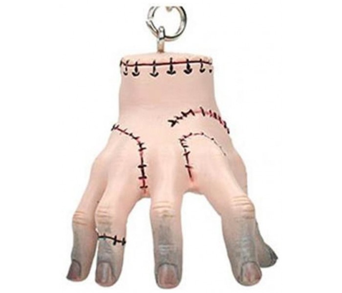 Lleva contigo a la enigmática mano Thing, el peculiar personaje de la serie Wednesday, con este detallado **llavero figurativo de PVC**. Diseñado para fans de la familia Addams, este accesorio es ideal para darle un toque original y distintivo a tus llaves, mochila o estuche. Fabricado con materiales resistentes, combina durabilidad y estilo con un diseño icónico y reconocible al instante.