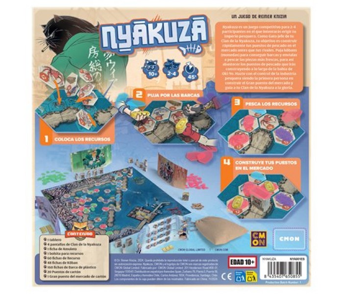Nyakuza es un juego competitivo para 2-4 participantes en el que intentarás erigir tu imperio pesquero.