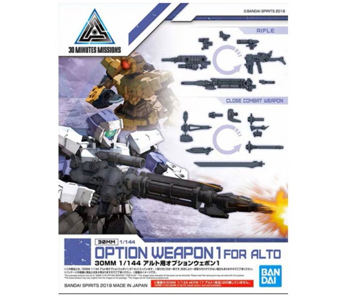 Este set de armas opcionales está pensado para ampliar las posibilidades de personalización de los kits de la serie 30MM, especialmente compatibles con el modelo EXM-17A Alto (escala 1/144). Gracias a su diseño modular y gama de accesorios, ofrece a los aficionados del modelismo la oportunidad de dotar a su unidad de armas de largo alcance, combate cuerpo a cuerpo o configuraciones híbridas, aportando un plus de detalle y variedad en exposiciones o dioramas.