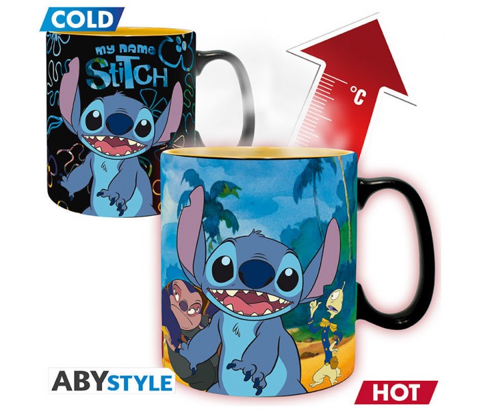 Una taza que no solo cumple su función, sino que **cobra vida con el calor**. Al verter líquido caliente, el diseño revela a tus personajes favoritos de Lilo & Stitch, convirtiendo cada bebida en un momento especial.