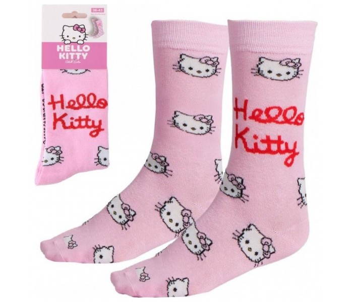 Estos calcetines cuentan con un estampado integral del rostro de Hello Kitty, acompañado de un llamativo logotipo bordado en rojo. El diseño es 100% reconocible y está fabricado bajo licencia oficial, garantizando autenticidad y calidad.