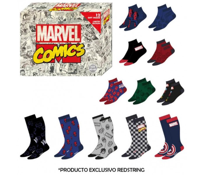 Si eres fan del universo Marvel o buscas un regalo original para un amante de los cómics, esta **caja regalo con 12 pares de calcetines Marvel** es la opción perfecta. Diseñada para tallas 40 a 46, ofrece una combinación ideal entre comodidad diaria y estilo inspirado en superhéroes icónicos. Cada par presenta un diseño exclusivo basado en personajes clásicos de Marvel, aportando color y carácter a tu vestuario diario.
