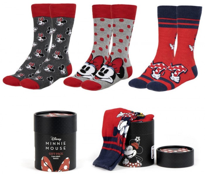 Este pack de calcetines de **Minnie Mouse para adultos** es el regalo ideal para los fans de Disney que quieren dar un toque divertido y original a su estilo diario. Diseñados con ilustraciones clásicas de Minnie en diferentes estilos y colores, estos calcetines destacan por su comodidad, presentación cuidada y licencia oficial. Vienen presentados en un elegante cilindro de regalo, perfecto tanto para uso personal como para sorprender a alguien especial.