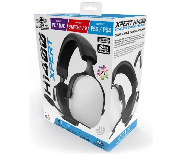 | Caracteristicas | - Plataformas compatibles: Nintendo Switch, PlayStation 4, PlayStation 5, Mac, Nintendo Switch 2, PC - Estandar de audio: estereo, sonido envolvente virtual 7.1, Windows Sonic - Tipo de casco: circumaural - Sensibilidad de casco: 106 dB (+/- 3 dB) - Frecuencia del casco: 20 - 20 KHz - Impedancia del casco: 32 ohmios - Tipo de microfono: desmontable y flexible, omnidireccional, con reduccion de ruido - Sensibilidad del microfono: -42 dB (+/- 3 dB) - Impedancia del microfono: 2 ohmios - Bateria: autonomia 40 horas, recargable 1000 mAh - Distancia de funcionamiento: 10 metros - Conexion: triple modo - Color: blanco/negro - Materiales: almohadillas HP, diadema y base de arco Dimensiones y peso - 18,2 x 9,5 x 21,6 cm - 280 g Contenido - Auriculares XPERT-H1400 - Cables USB y Jack 3,5 mm - Dongle USB doble - Guia de instalacion rapida |