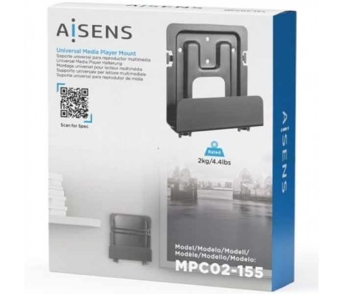 AISENS - Soporte Universal De Pared Para Mini Pc, Router, NegroSoporte de pared para mini PC, router u otros dispositivos electrónicos pequeñosFabricado con acero de alta resistencia.Este soporte de pared está especialmente diseñado para soportar tu mini PC, router u otros dispositivos electrónicos, con lo que podrás mantenerlos en un lugar seguro y accesible mientras ahorras espacio en tu hogar o área de trabajo.