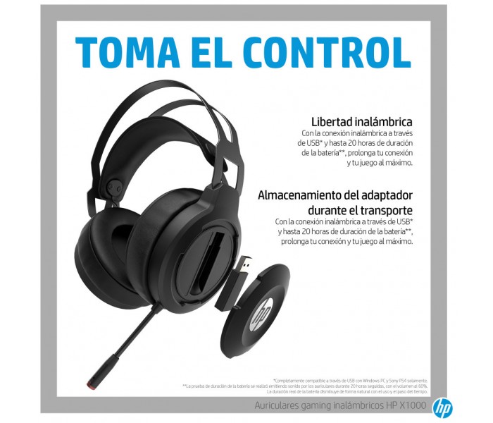 auriculares inalámbricos para juegos hp x1000 dongle cable de carga (conector