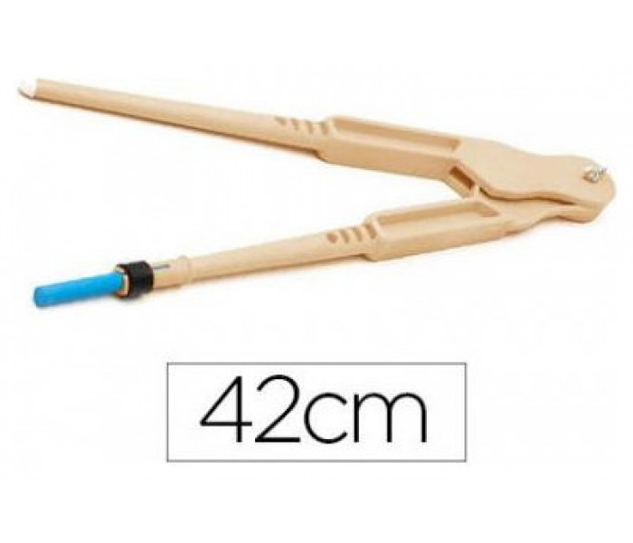 Este compás para encerado Faibo está fabricado en plástico con acabado que imita la madera, combinando funcionalidad y estética en una herramienta ligera y resistente. Con una longitud total de 42 cm, permite realizar trazos amplios con precisión, especialmente diseñado para uso escolar y trabajos sobre pizarras. Su diseño incluye una punta de plástico para apoyo y tiza en el extremo opuesto, facilitando el marcado de circunferencias y arcos en diversas superficies.