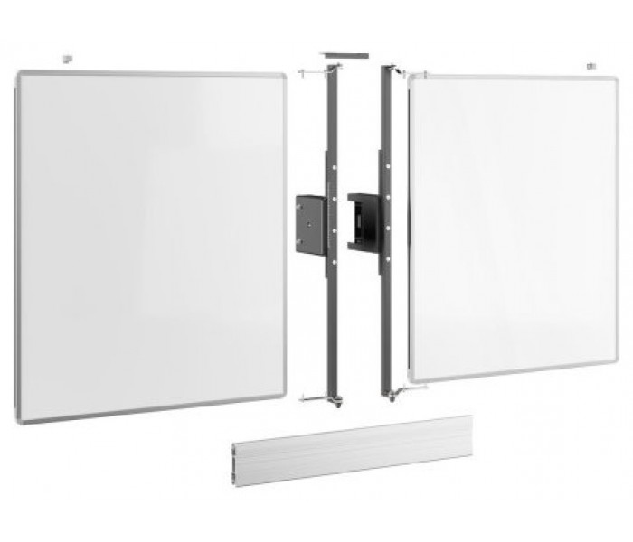 El conjunto de pizarra blanca RISE WB75M es un sistema universal, apto para todo tipo de pantallas (interactivas) de 75". Este accesorio le permite montar una pizarra blanca a la izquierda y a la derecha de su pantalla de 75". Los tableros de acero esmaltado están unidos por arriba y por abajo con una bisagra desarrollada por Vogel"s, que mantiene la fricción y la estabilidad de la escritura incluso después de un uso frecuente. Si con el tiempo la fricción va siendo menor de lo deseado, la bisagra se puede ajustar fácilmente.Este juego es adecuado en combinación con el carro y los soportes de suelo RISE 5xxx y contiene uno o dos contrapesos para mayor estabilidad. Debido al ajuste de altura de 985 mm, estos elevadores requieren un contrapeso para cumplir con los estándares de seguridad.