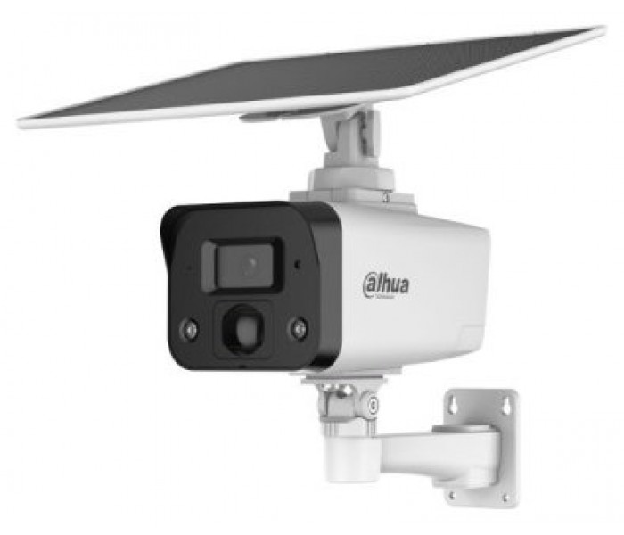 Cámara IP 4G de Dahua. 4MP@15 ips, compresión H.265. ICR, 0,001 lux. Smart Dual Light con IR 30 m y luz blanca 20 m. Óptica fija de 3,6 mm. WDR, BLC, HLC, 3D NR, ROI. PIR, SMD, audio bidireccional, alarmas y detección de batería baja. Ranura MicroSD. Batería interna de 64 Wh y panel solar de 10,5?W incluidos. IP67.