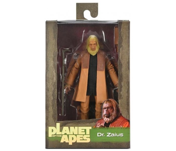 Neca presenta la figura de Dr. Zaius. Mide 18 cm y está basada en el personaje de la pelÃcula de 1968 ""Planet of the Apes"" (""El planeta de los simios"" en España). Incluye 1x bastón y 1x botella. Se presenta en una caja con ventana.
