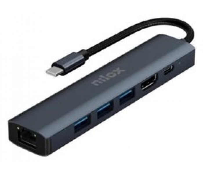 Docking USB Tipo-C Woxter PE26-181/ 1xHDMI/ 2xUSB/ 1xLector de Tarjetas/ 1xRJ45/ 1xMicroUSB/ GrisWOXTER HUB 7 IN 1 ALUMINUMHub Docking Station USB con conexión tipo C con el que podrás conectar hasta 7 dispositivos a la vez.Con toma de carga USB-C PD, puerto HDMI 4K, 2X USB 3.0, ranura para tarjetas SD/Micro-SD y conector RJ-45Puerto USB-C para car..