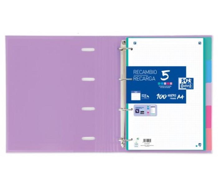 KIT SEPARADORES PP 500 MICRAS A4 5 POSICIONES COLORES VIVOS OXFORD 400159037KIT SEPARADORES PP 500 MICRAS A4 5 POSICIONES COLORES VIVOS OXFORD 400159037Fabricados en plástico opaco de 500 micras. Los cinco colores de los separadores son a juego con los cinco colores de bandas del recambio pastel. Ideal para los que organizan por color. Los separado..