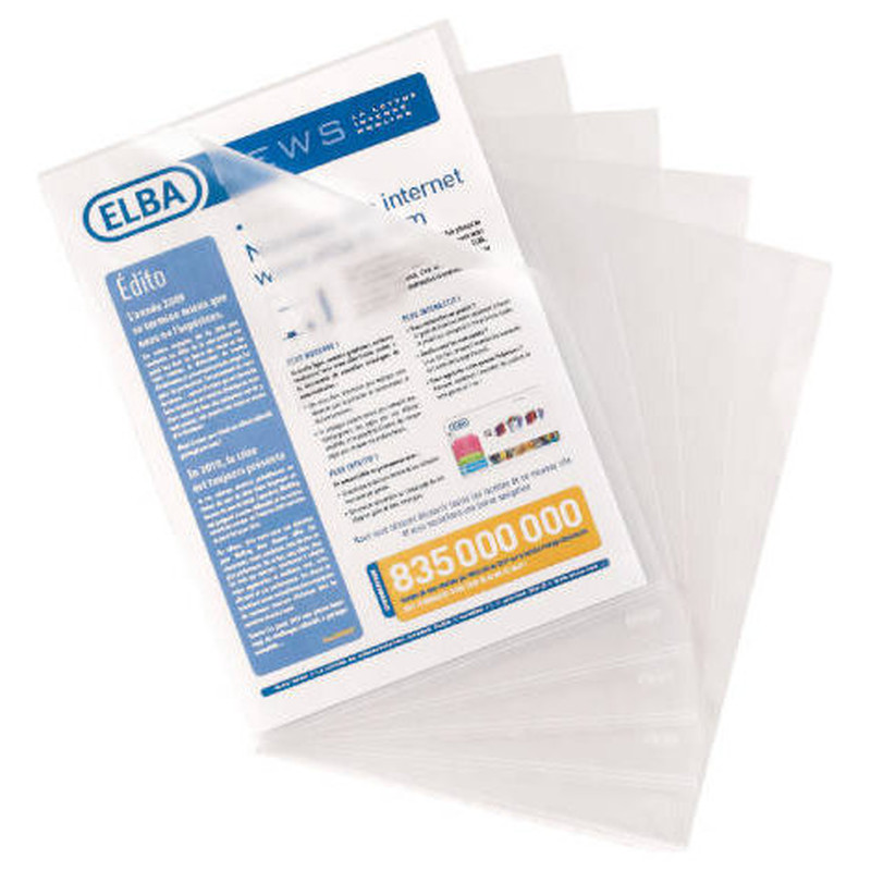 Carpeta dossier uñero Elba standard, folio plástico 140 micras, piel naranja, caja de 100 unidades, marca Elba, color transparente.