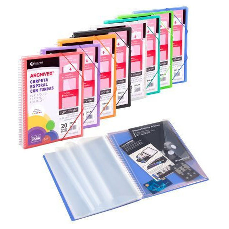 Carpeta espiral ARCHIVEX. Fundas polipropileno calidad Extra con refuerzo. Cierre con gomas. Tamaño A4.