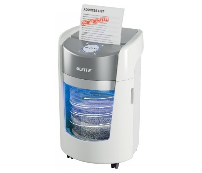 La pequeña destructora de oficina Leitz IQ OptiMax ofrece una solución de destrucción innovadora y elegante diseñada para proporcionar una seguridad y tranquilidad excepcionales en los documentos. Esta destructora de papel DIN P5 de alta seguridad destruye sin esfuerzo hasta 8 hojas A4 a la vez en trozos microcortados, lo que la convierte en la pequeña destructora perfecta para uso personal y de oficina. Incorpora la exclusiva tecnología de giro de papelera (BRT), que maximiza la capacidad de los contenedores en +33%*. La papelera giratoria garantiza una distribución plana y uniforme del papel, evitando que se formen picos y permitiendo destruir 90 hojas A4 adicionales antes de vaciarla. Gracias al BRT, no es necesario agitar o sacar la papelera manualmente: el indicador de "papelera llena" solo se activa al 100% de su capacidad. Con una generosa papelera de 22 L con capacidad para 350 hojas A4, esta destructora garantiza menos interrupciones. La papelera azul iluminada y la intuitiva pantalla LED giratoria proporcionan alertas claras y fáciles de seguir, como la papelera llena y la puerta abierta, para que la destrucción resulte sencilla y eficiente. Pensada para espacios de trabajo modernos, la destructora de oficina Leitz IQ OptiMax 350 está diseñada específicamente para oficinas pequeñas, con un funcionamiento ultrasilencioso que minimiza el ruido, ideal para entornos compartidos. Su elegante y compacto diseño circular se adapta fácilmente a espacios reducidos, integrándose a la perfección en cualquier oficina. Con un tiempo de funcionamiento continuo de 20 minutos, esta fiable destructora garantiza la eliminación de documentos sin problemas siempre que sea necesario. Color blanco.*Leitz IQ OptiMax 350 probada con y sin tecnología de giro de papelera.