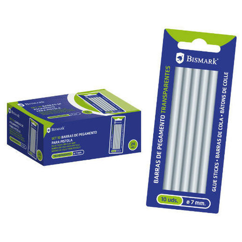 BLISTER 10 BARRAS DE PEGAMENTO SILICONA TRANSPARENTE 7,2 X 100 MM. BISMARK- Producto: Blister barras de pegamento transparente - Tipo de pegamento: Silicona- Medidas: 7.2 x 100 mm- Cantidad: 10 barras