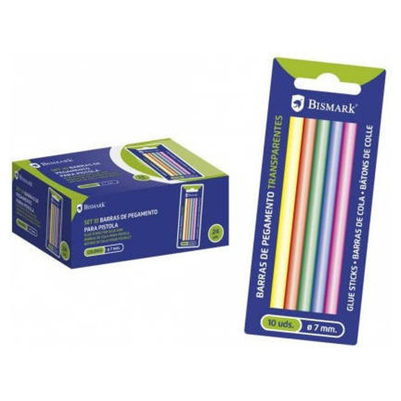 BLISTER 10 BARRAS DE PEGAMENTO SILICONA SURTIDO COLORES 7,2 X 100 MM. BISMARK 327110 (Espera 4 dias)
