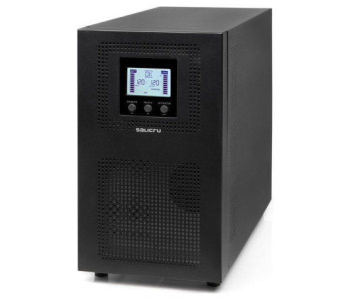 Salicru SLC-3000-TWIN PRO2 A. Topología UPS: Doble conversión (en línea), Capacidad de potencia de salida (VA): 3 kVA, Potencia de salida: 2700 W. Tecnología de batería: Plomo-Calcio (Pb-Ca), Tiempo de recarga de la batería: 4 h. Factor de forma: Torre, Color del producto: Negro, Tipo de visualizador: LCD. Seguridad: IEC 62040-1 / UL1778 5th edition / CSA C22.2. Ancho: 190 mm, Profundidad: 421 mm, Altura: 318 mm