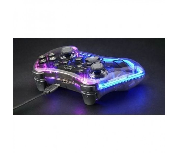Gamepad con conexión inalámbrica profesional 2.4GPRO, sin lag y con la máxima estabilidad de conexión. Espectacular diseño translúcido negro con iluminación NEÓN RGB. Sistema de vibración háptica dual y compatibilidad superior multiplataforma.