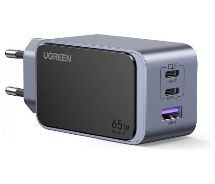 Ugreen Nexode Air 65W sieninis kroviklis, USB + 2x USB-C pilkos spalvos Ordenador portátil, Teléfono móvil, Ratón, Portátil, Batería portátil, Tableta Gris Corriente alterna Carga rápida Interior