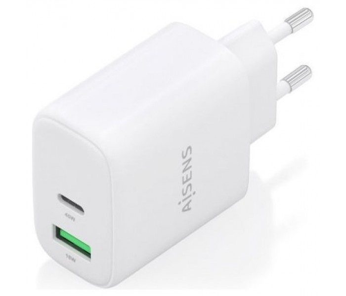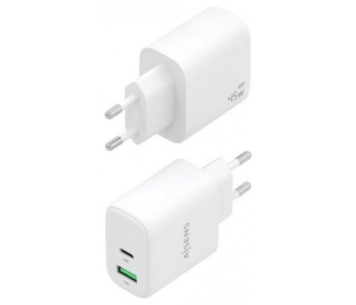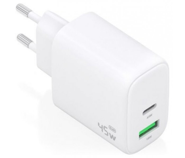 A110-0971 – Cargador GaN 45W, 1xUSB-C PD3.0 QC4.0, 1xUSB-A QC3.0, Blanco
