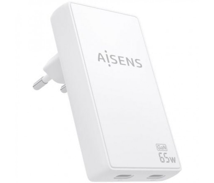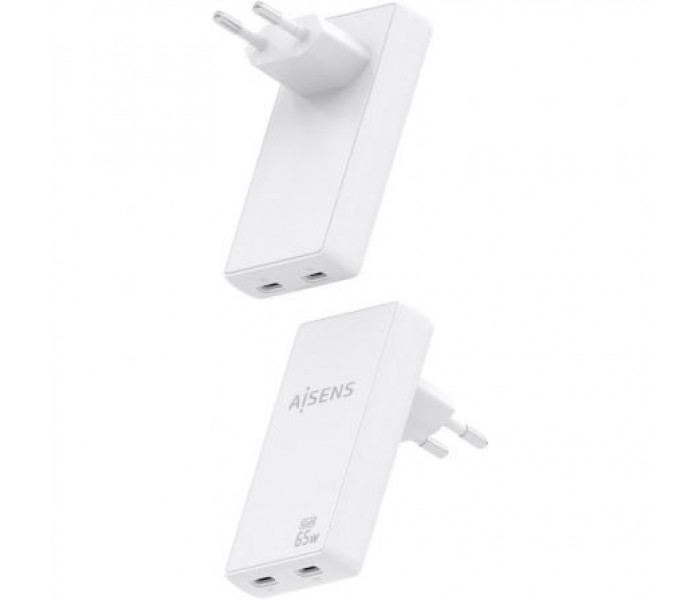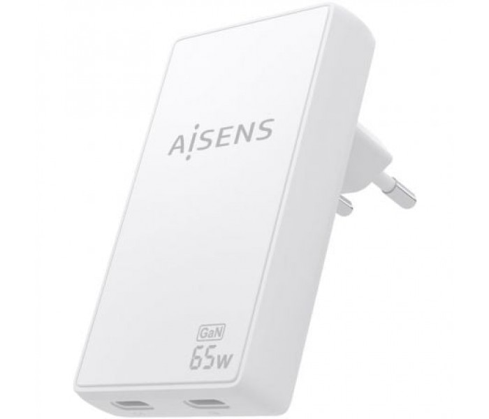 AISENS - CARGADOR DE PARED GaN ULTRA DELGADO 65W, 2xUSB-C PD3.0 QC4.0, BLANCO